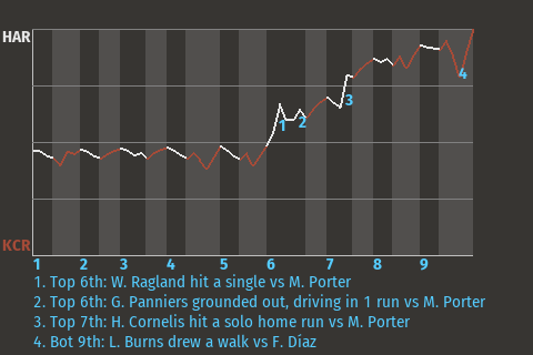 Emílio Núñes drew 3 walks for Plymouth. With no one out and the game tied in the top of the 11th inning, Núñes had a clutch at-bat. Facing Vermont hurler Howard Moore, he grounded out, driving in 1 run to give the Rocks a 7-6 lead.
