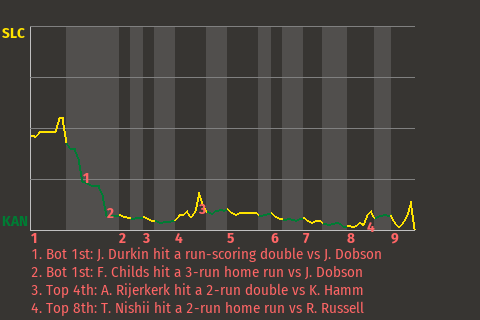 Salt Lake City took control in the bottom of the seventh. With one out and runners on 1st and 2nd, Sumitomo Shimizu hit a run-scoring single to make it 3-2, Buzz.
