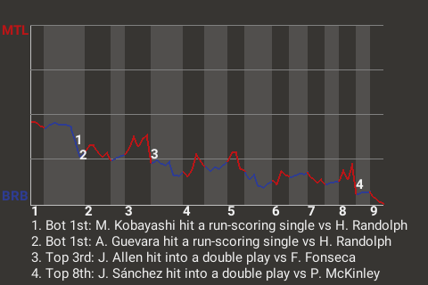 2 (2, 3rd Inning off H. Randolph, 1 on, 2 outs; 5th Inning off H. Randolph, 1 on, 1 out)