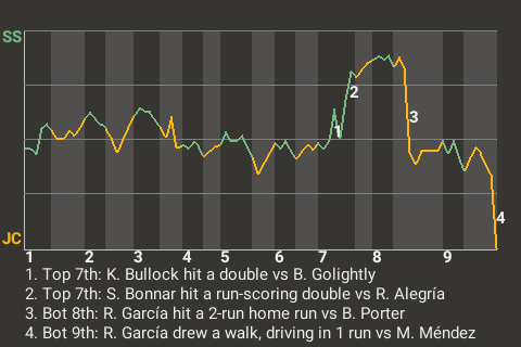 b - B. Strong pinch ran for K. Bullock in the 9th