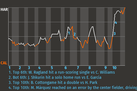 b - J. Kim pinch hit for M. Chipley in the 9th