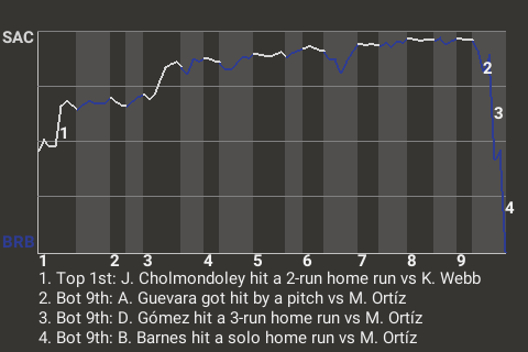 The climactic moment came in the bottom of the ninth for Baton Rouge. That's when Bill Barnes, who is tied for 8th in the PAAA in stolen bases with 7, hit a solo home run off Miguel Ortíz to win the game. The home crowd erupted in celebration.