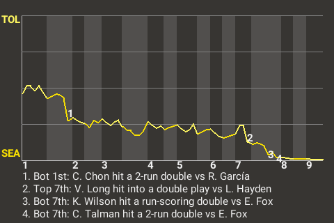 a - V. Long pinch hit for J. Myers Myers in the 7th
