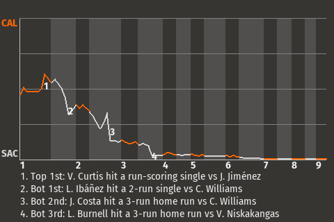 Baton Rouge third baseman Paco Hernández contributed a timely at-bat in the bottom of the third. With two down, he hit a fastball to center field for a 2-run single. It was his 40th hit of the season and put the Brass ahead, 5-0.