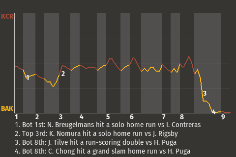 (10, 5th Inning off K. Webb, 3 on, 0 outs)