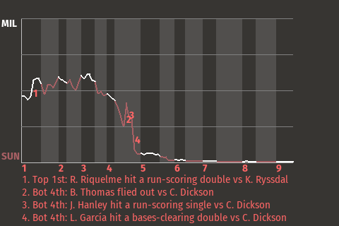 2 (13, 6th Inning off C. Dawson, 0 on, 1 out; 7th Inning off M. Sexton, 2 on, 0 outs)