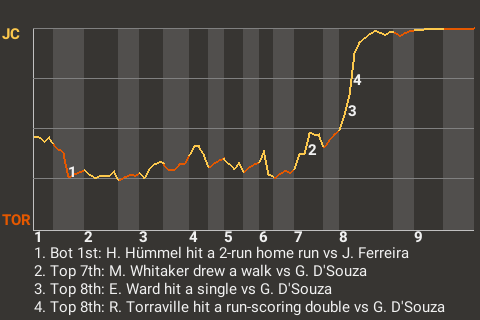 2 (4, 2nd Inning off B. Porter, 0 on, 1 out; 7th Inning off J. Ellison, 2 on, 2 outs)