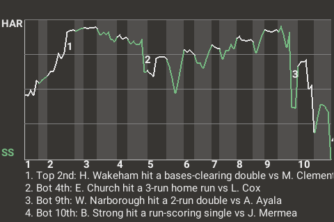 e - T. Lambert pinch hit for H. Harvey in the 10th