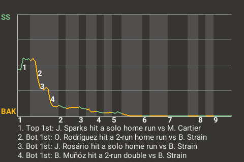 3 (11, 5th Inning off M. Ramírez, 0 on, 1 out; 7th Inning off B. Hernández, 0 on, 2 outs; 8th Inning off J. Albert, 2 on, 2 outs)