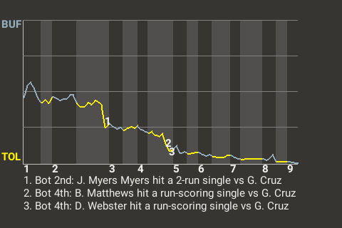 With two out in the bottom of the second, John Myers Myers put Toledo in front, 2-0, with a 2-run single. The Stingers went on to win the ballgame.
