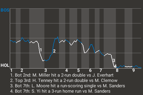 2 (9, 3rd Inning off M. Clemow, 2 on, 1 out; 8th Inning off M. Clemow, 1 on, 1 out)