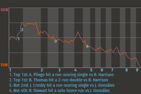2 (7, 4th Inning off V. Lagers, 1 on, 0 outs; 7th Inning off C. Bligh, 1 on, 2 outs)