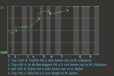 Making an impact for the home team was Mario Peña. In the bottom of the seventh, the 29-year old right fielder had a run-scoring walk. That made the score 3-1, Tritons.