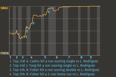 Tied up with the Tritons in the top of the fifth inning, the Starks got a boost from third baseman Milo Hamilton. With the bases loaded, Hamilton saw a 2-0 fastball from Stanton Maxwell and hit a 2-run single to break the stalemate and put Syracuse on top, 2-0.
