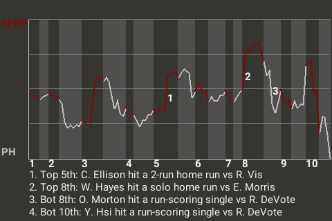 a - V. González pinch hit for S. Leonard in the 9th