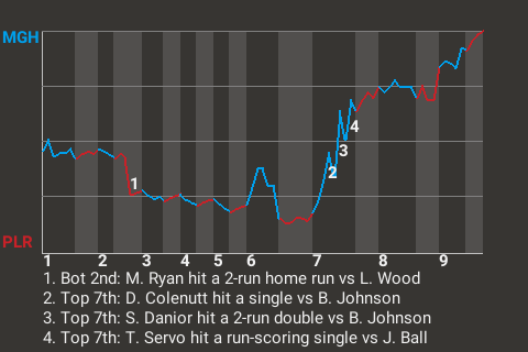 Had Blanchard not come through in the top of the ninth, who knows how the game would've ended? But with two down, Blanchard hit a 2-run single. The Monsters took the lead, 4-2, and never looked back.