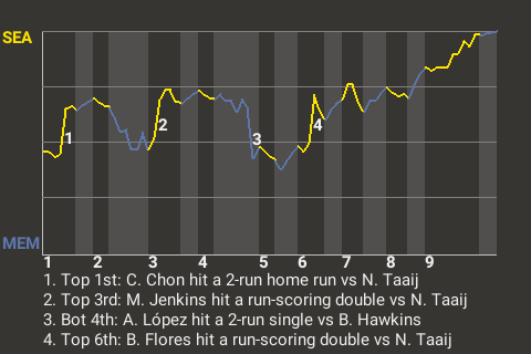 Behind the bravura of right fielder Chong-hun Chon, the Seattle Rocketeers topped the Memphis Mockingbirds by the score of 8-4. Chon was 3-5 with a home run and 2 singles. He scored 2 runs and drove in 4 for the Rocketeers. Adam Shirley recorded the save, his 2nd. Seattle is now 21-29, while Memphis is 22-28.