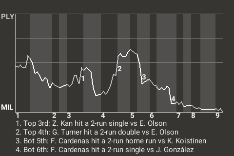 2 (6, 1st Inning off R. Cote, 1 on, 1 out; 8th Inning off C. Rodríguez, 0 on, 1 out)