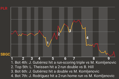 b - C. Gaston pinch hit for D. García in the 7th