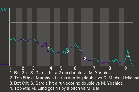 Colorado got a lift in the bottom of the third from second baseman Steve García, who hit a sinker to right-center for a 2-run double. His 8th double of the season put the Billy Goats up, 2-0.