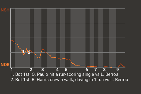 Brad Harris had a key at-bat with two out in the bottom of the first for Norfolk. With the bases loaded and the Pajaritos leading 1-0, he drew a walk, driving in 1 run.
