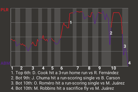 2 (11, 3rd Inning off R. Fernández, 1 on, 2 outs; 6th Inning off R. Fernández, 0 on, 0 outs)