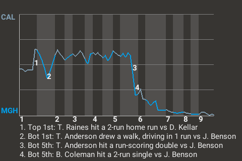 Calgary third baseman Tim Raines had a good game, even if his team did not. The Lynx dropped a 6-3 decision to Monongahela at Timber Hawks Ballpark. Raines was 3-4 with a home run and 2 singles, while scoring 2 times and driving in 2. Doug Kellar got the win, improving to 2-4. He pitched 5 innings, giving up 6 hits and 2 runs, while striking out 3 and walking 0. Brad Pratly locked down his 2nd save.