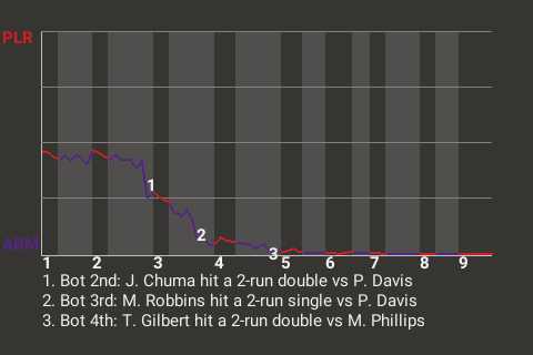 2 (6, 3rd Inning off P. Davis, 0 on, 0 outs; 4th Inning off M. Phillips, 1 on, 0 outs)