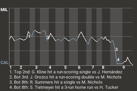 Had Ball not come through in the top of the eighth, who knows how the game would've ended? But with two down, Ball hit a run-scoring single. The Monsters took the lead, 6-5, and never looked back.