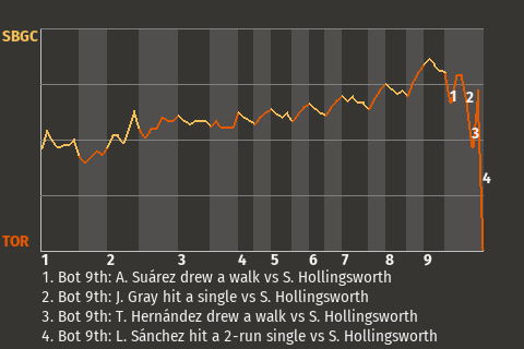 b - J. Sáenz pinch hit for T. Robinson in the 9th
