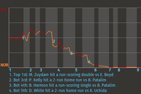 This game was not decided until late. With two out in the top of the 12th, Fred Watkins drew a walk, driving in 1 run. The Red Pandas took the lead, 4-3.