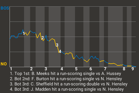 2 (5, 2nd Inning off N. Hensley, 0 on, 0 outs; 3rd Inning off N. Hensley, 1 on, 2 outs)