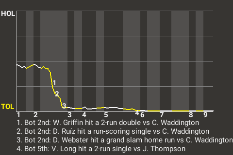2 (15, 2nd Inning off C. Waddington, 3 on, 1 out; 6th Inning off J. Thompson, 1 on, 2 outs)