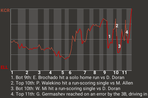 2 (19, 3rd Inning off R. Maynard, 0 on, 0 outs; 7th Inning off K. Busby, 0 on, 1 out)