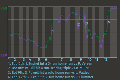 a - V. Rivas pinch hit for M. Carlson in the 7th