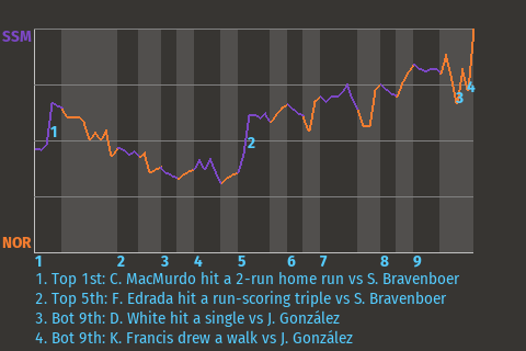 Syracuse relied on the bat of Sidney Ames to get the win. The left fielder ripped a 2-run triple in the top of the second inning to put the Squirrel Monkeys ahead, 2-0. For the game, Ames had 1 double and 1 triple in 4 at-bats.