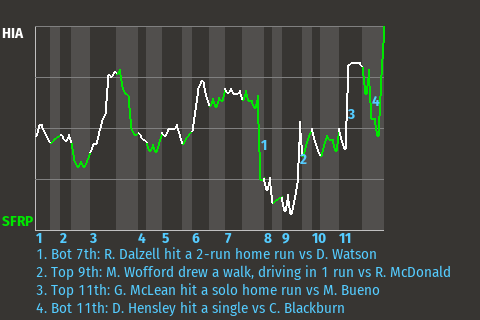 2 (15, 6th Inning off H. Hasegawa, 2 on, 2 outs; 8th Inning off D. Uribe, 0 on, 0 outs)