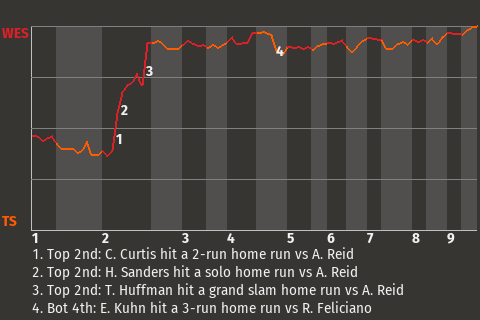 In the bottom of the sixth, the Sixshooters grabbed the lead when Tuahsson hit his 2nd home run of the season. The solo home run off José Mecedone made it 2-1, Westwood.