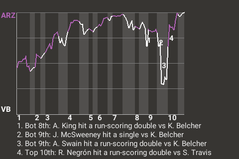 Westwood took the lead in the bottom of the sixth. With one out and runners on 2nd and 3rd, Valentín Vargas stroked a 2-run single to make it 3-1, Sixshooters.