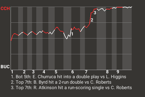 (10, 1st Inning off C. Roberts, 0 on, 0 outs)
