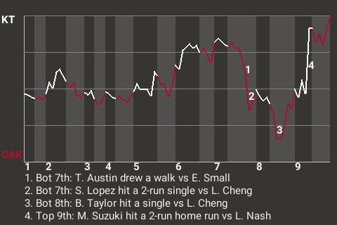 2 (4, 5th Inning off A. Sánchez, 1 on, 2 outs; 9th Inning off S. Holman, 0 on, 1 out)