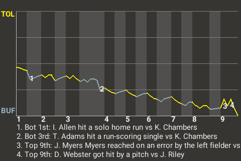 Ballpark: Beyond the Wall Weather: Clear skies (61 degrees), wind blowing out to center at 10 mph Start Time: 1:05 PM CT Time: 2:40 Attendance: 42220 |