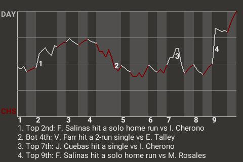 Salinas had a game-changing home run in the top of the ninth. On a 0-1 fastball from Mario Rosales, he banged a solo home run to left, giving the Dirty Reds a 3-2 lead. It was the 9th home run of the year for Salinas.