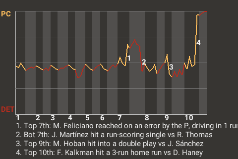 b - B. Cobb substituted for M. Feliciano in the 10th