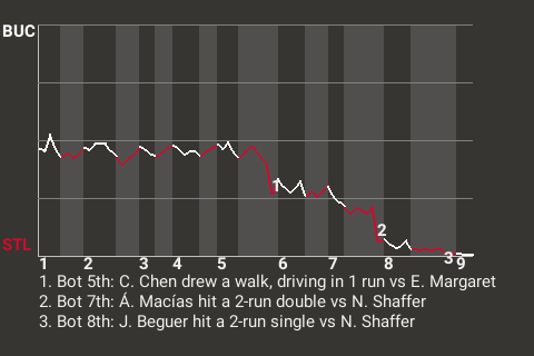 Chia-ch'ing Chen went 2 for 4 with 2 singles and a walk for St. Louis. The 2061 3L home run champion had a key at-bat in the bottom of the fifth. With two out and the bases loaded, he broke a 0-0 tie with a run-scoring walk off Edward Margaret. It was his 10th walk of the season.