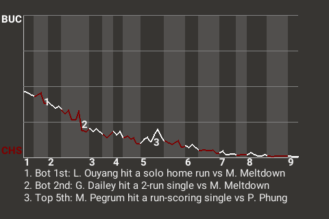2 (19, 2nd Inning off M. Meltdown, 1 on, 1 out; 4th Inning off M. Meltdown, 0 on, 1 out)