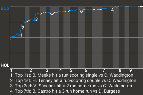 2 (13, 1st Inning off C. Waddington, 2 on, 1 out; 9th Inning off A. Gutiérrez, 1 on, 0 outs)
