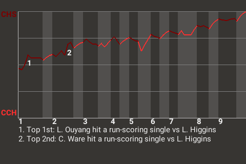 In his 103-pitch effort, Cherono allowed no runs on 3 hits over 6.2 innings. He walked 0 and struck out 7.