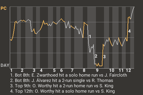 2 (19, 9th Inning off S. King, 1 on, 2 outs; 12th Inning off S. King, 0 on, 1 out)