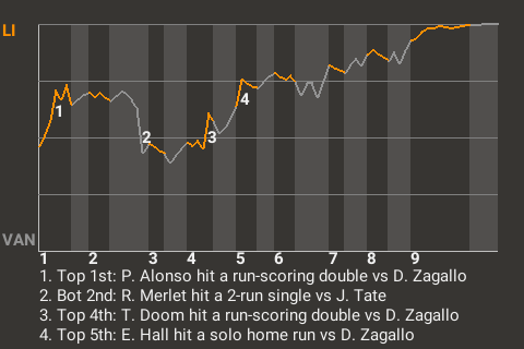 2 (9, 4th Inning off D. Zagallo, 1 on, 2 outs; 9th Inning off B. Carter, 1 on, 0 outs)